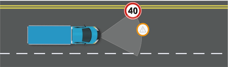系统对摄像头视野内的限速交通标志进行探测并识别,车速限制可以通过仪表显示给司机。系统发出报警信号,仪表显示限速值,并用图标作为提示,蜂鸣器报警1声2秒。