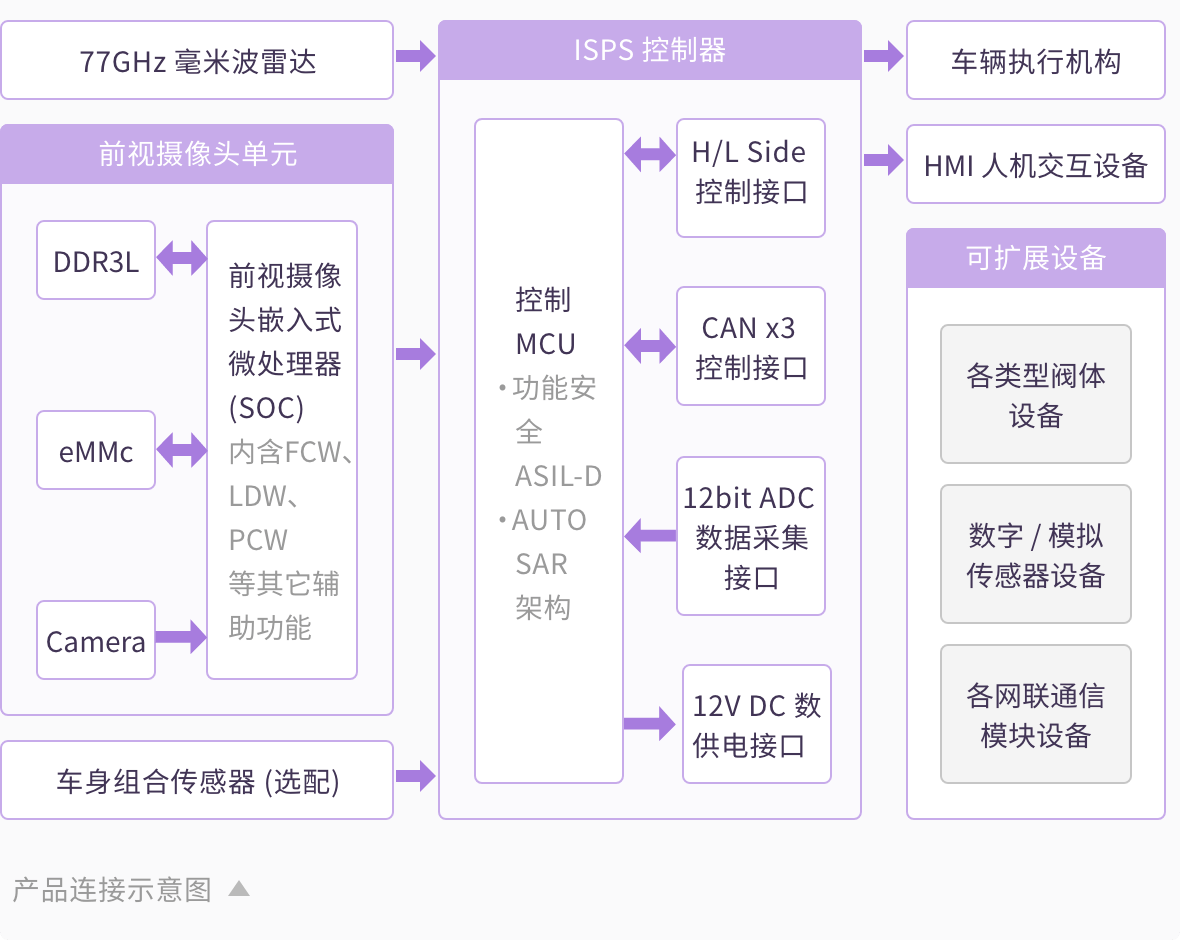 系统通过摄像头检测前方车道线,计算出车身与车道线之间的距离。当驾驶员无意识偏出车道时,系统告警,提示驾驶员回到本车道内,避免危险,系统可输出车道线曲率等信息。